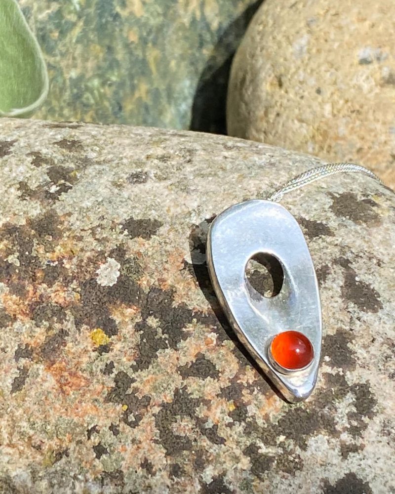 Quality fully hallmarked Solid Sterling Silver set with a Carnelian Stone.